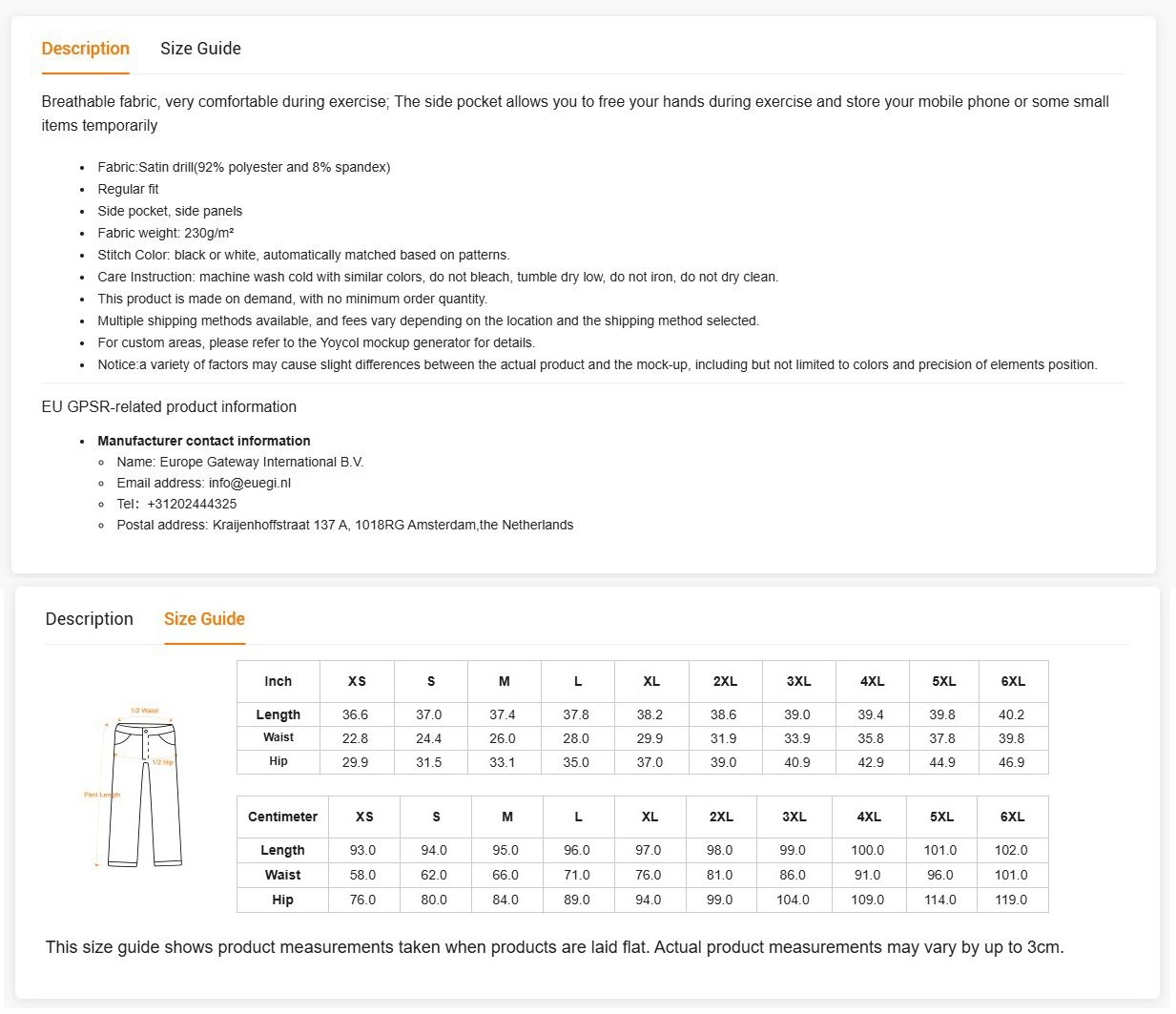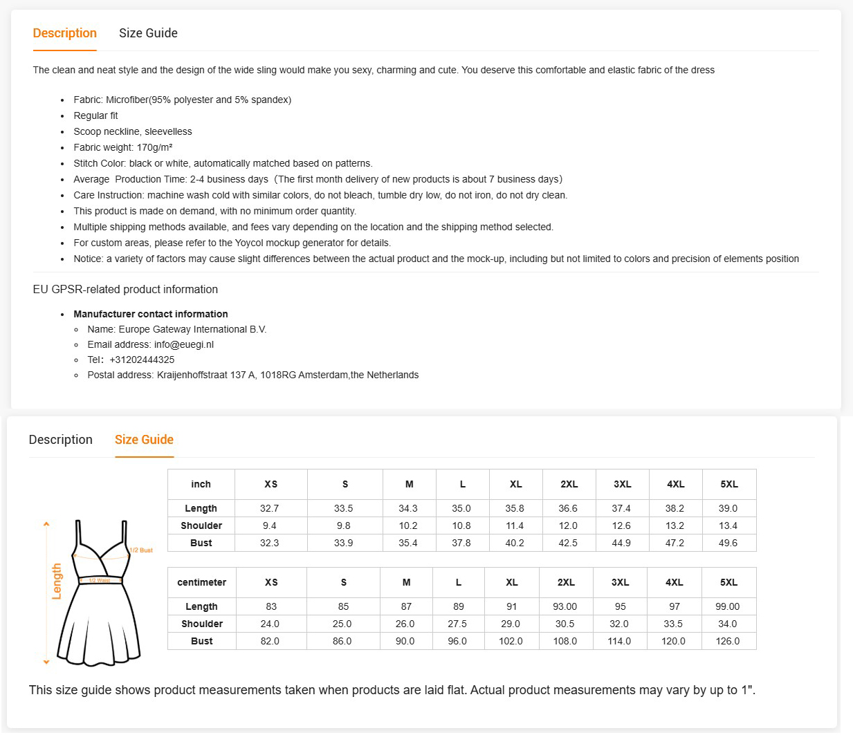 Please check the Yoycol Descriptions and Size Guides carefully before ordering, and select size in the drop-down menu.