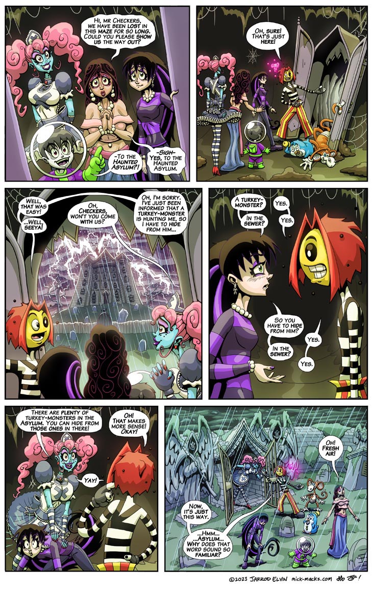 Checkers points the way out of the sewers to the Haunted Asylum, which Daemiana, Fidget, Dot and Mack have been looking for for ages! Which happened to be exactly where he was hiding. Almost as if they needed to find him to get there...