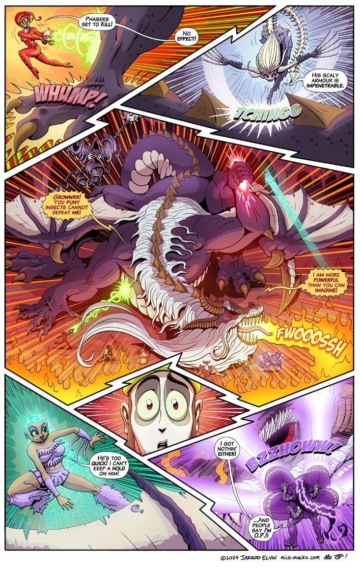 Our heroes are finding that Orkash, in his dragon form, is exceedingly formidable!