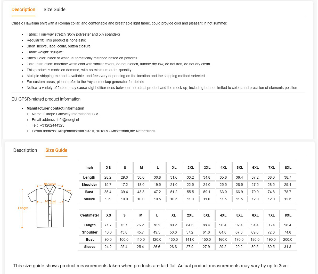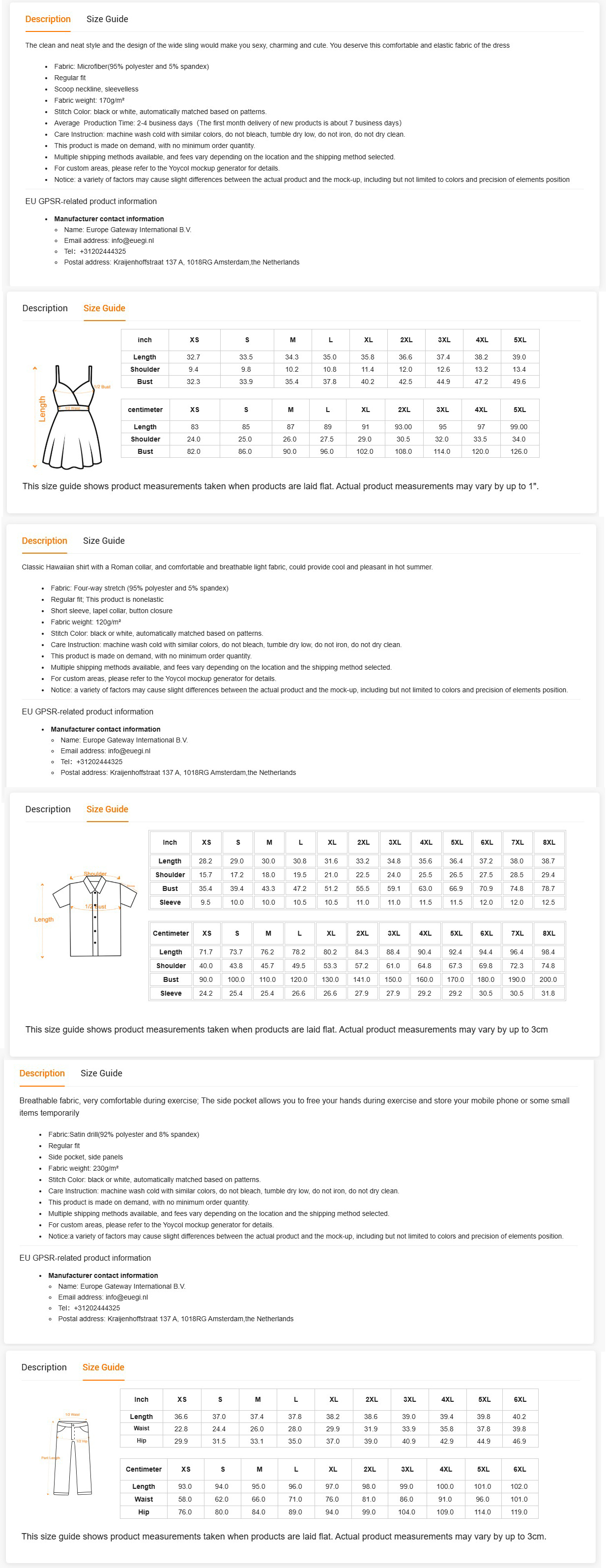 Please check the Yoycol Descriptions and Size Guides carefully before ordering, and select size in the drop-down menu.